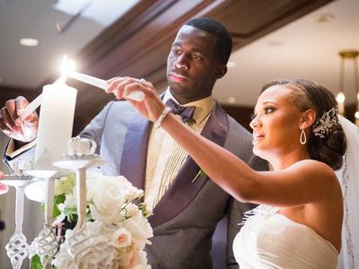 Unity Candle - The couple each take a lit candle and simultaneously light a third larger "unity candle." They may blow out their individual lights, or leave them lit, symbolizing that they have not lost their individuality in their unity.